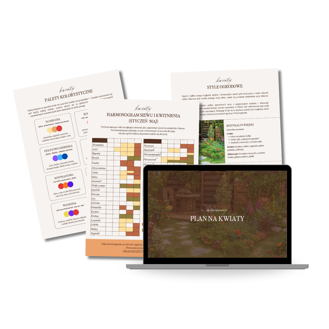 Będzie to piękny, ilustrowany kalendarz siewu i kwitnienia, który poprowadzi Cię przez cały sezon ogrodniczy — od wczesnej wiosny aż do późnej jesieni.